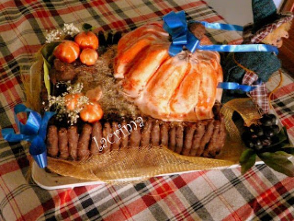 Torta della strega - magia dolce di tutti santi vota adesso PrecedenteProssimo Dessertfacile2 ore Invia questa ricetta ad un amico Stampa la ricetta Contatta l'autore della Ricetta Pubblica la foto di questa ricetta Ingredienti 4 L'impasto 1: 8 uova 16 cucchiai di zucchero 8 cucchiai di farina 3 cucchiai di cacao 2 cucchiai di rhum 1 bustina lievito polvere 1 bustina zucchero vanigliato L'impasto 2 - torta zucca: 4 uova 8 cucchiai di zucchero 4 cucchiai di zucca grattuggiata 1 cucchiaino di cannella 5 cucchiai di farina 3 cucchiai di cacao 1 bustina di lievito in polvere Per la crema: 1,2 l panna da montare 3 uova 50 g zucchero 100 g cioccolato bianco 100 ml latte 50 g amido Per i grissini di cioccolato: 600 g biscottini semplici 400 g cioccolato fondente 250 ml acqua 100 g zucchero 100 g burro Per coprire la zucca 200 g pasta di zucchero