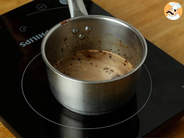 Scaldate il latte, lo zucchero, il caffè solubile ed il cacao amaro in un pentolino. Da quando la preparazione arriva ad ebollizione, tenetela ancora sul fuoco per 5 minuti. Poi spegnete e lasciate raffreddare.
