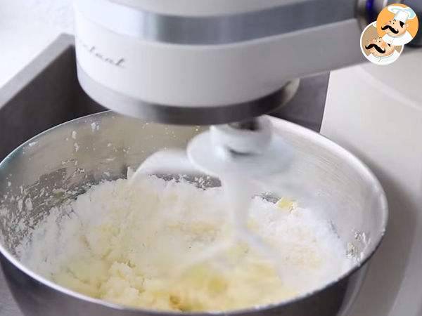 Sbattete il burro a temperatura ambiente. aggiungete lo zucchero a velo e mescolate fino ad ottenere un composto cremoso