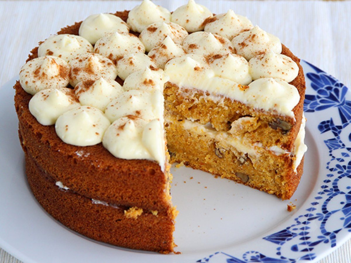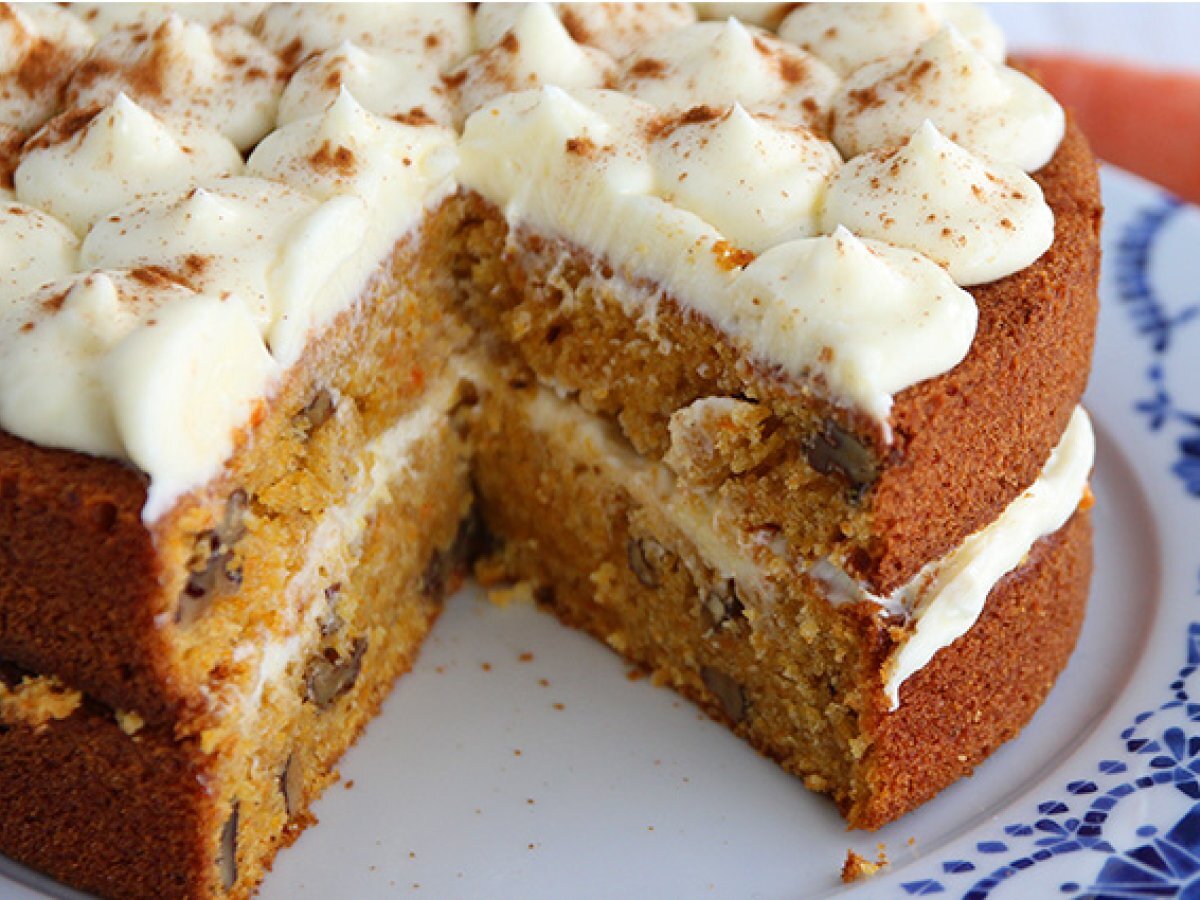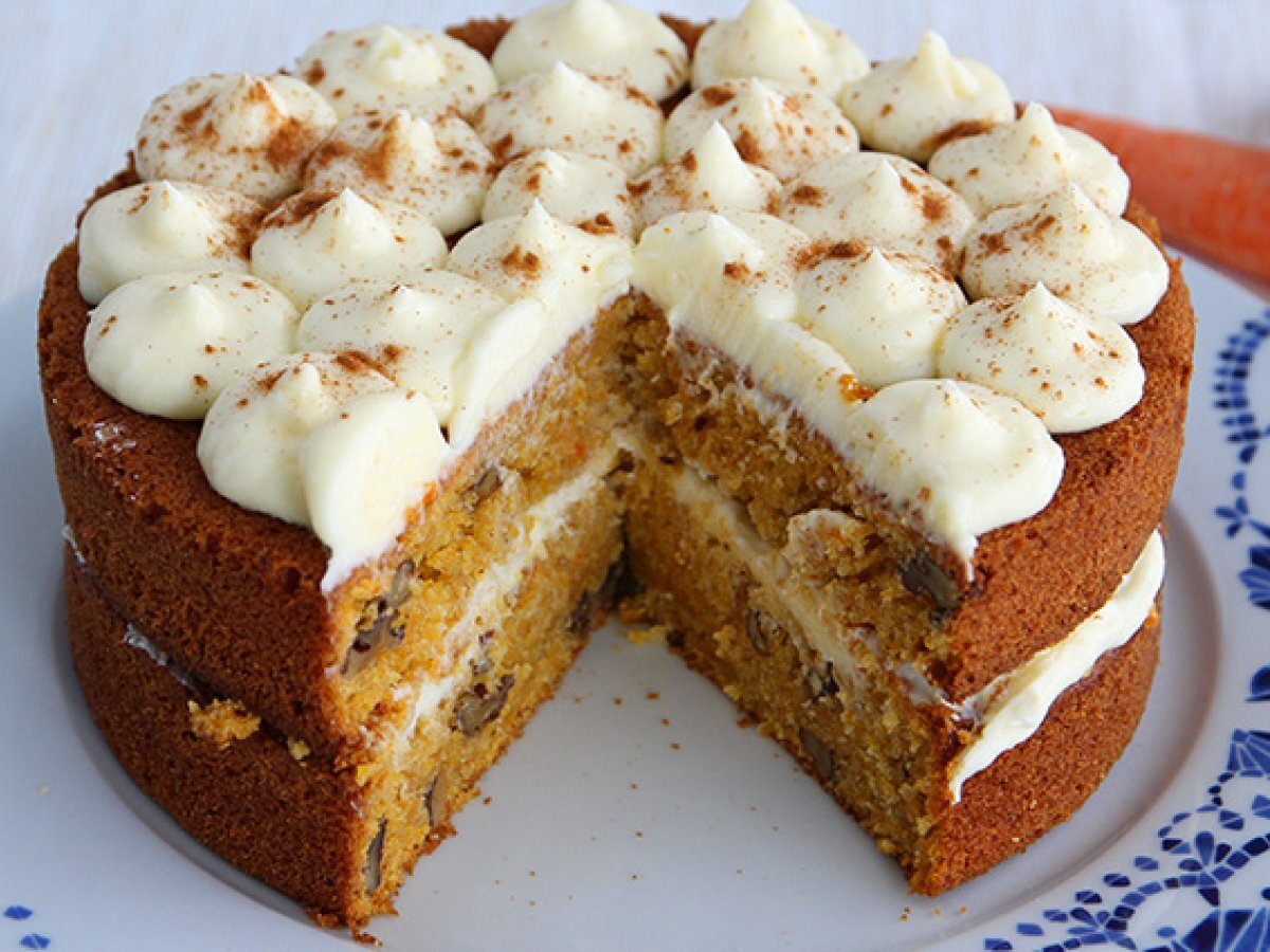 Una deliziosa torta di carote arricchita dal gusto speciale delle noci. La crema che abbiamo utilizzato per farcirla è estremamente golosa. Date un'occhiata!