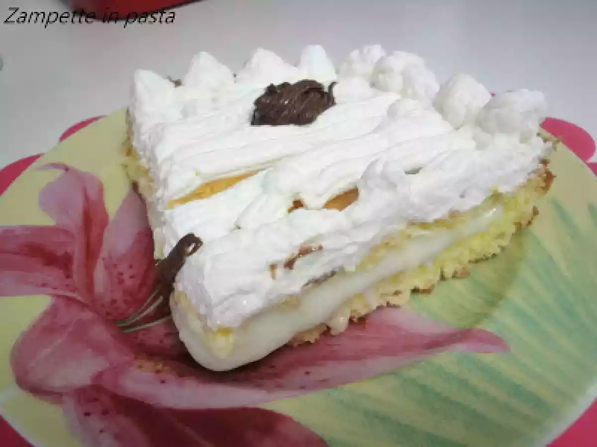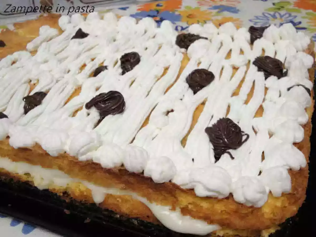 Torta di compleanno del mio papa' PrecedenteProssimo Dessertfacile1 h 10 m Invia questa ricetta ad un amico Stampa la ricetta Contatta l'autore della Ricetta Pubblica la foto di questa ricetta Ingredienti 4 5 uova 200 g di zucchero 150 g di farina setacciata 100 g di fecola di patate la buccia di 1/2 limone sale CREMA AL LATTE: 100 g di zucchero 500 ml di latte 100 g di farina 1 bustina di vanillina 125 ml di panna per dolci