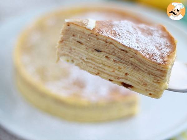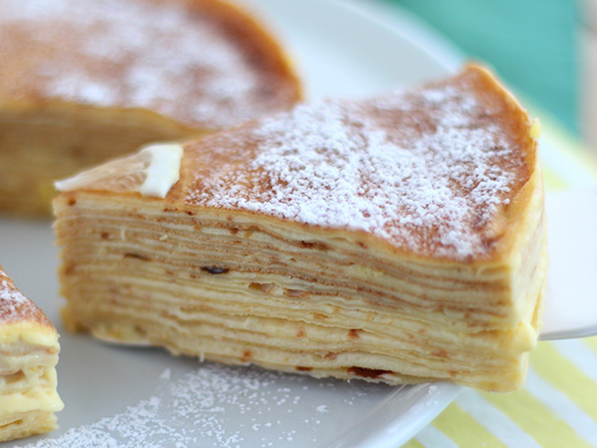 Create uno strato di crema al limone. Poi posate un'altra crêpe e rifate uno strato di crema. Ripetete l'operazione fino a terminare la crema.