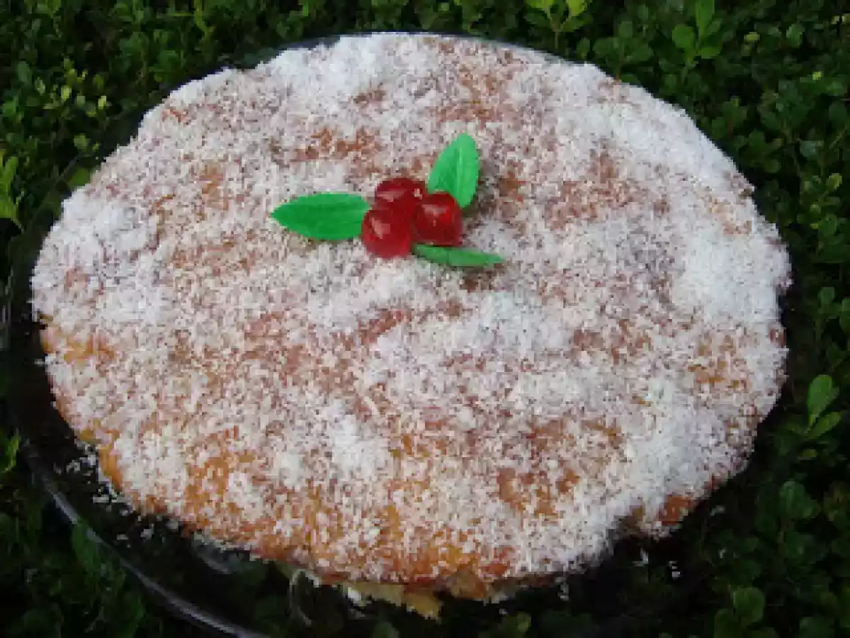 Torta di mele con marmellata vota adesso PrecedenteProssimo Dessertfacile55 min Invia questa ricetta ad un amico Stampa la ricetta Contatta l'autore della Ricetta Pubblica la foto di questa ricetta Ingredienti 4 4 mele tagliate a fettine 125 g di burro 125 g di zucchero 3 uova 200 g di farina scorza di limone grattugiata 1 fialetta di aroma 1 pizzico di sale 1 bustina di lievito per dolci Per decorare: marmellata di mele farina di cocco ciliegine candite