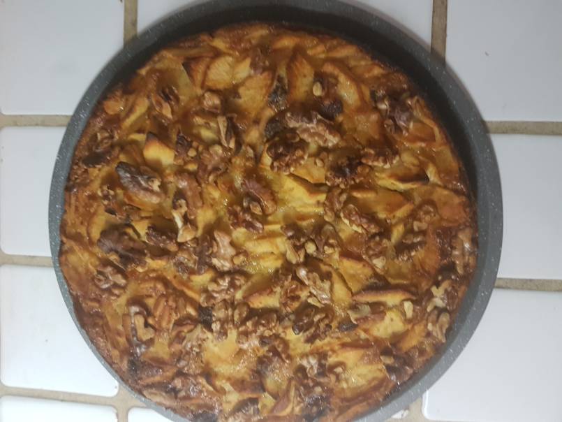 Torta di mele,noci e uvetta PrecedenteProssimo Dessertfacile1 h 20 m686 Kcal Invia questa ricetta ad un amico Stampa la ricetta Contatta l'autore della Ricetta Pubblica la foto di questa ricetta Ingredienti 4 200 g farina 100 g zucchero 2 tuorli 70 g burro sciolto 40 g gherigli di noci 40 g uvetta 2 dl latte 1/2 bustina lievito 1 bustina zucchero vanigliato 1 kg mele Costo stimato: 4.58Euros€ (1.14€/Porzioni)