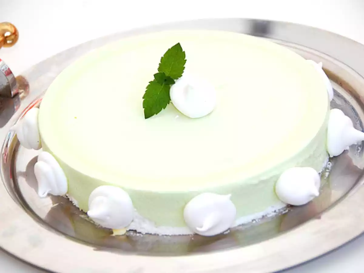 Torta di meringa con crema di cioccolato bianco alla menta e tequila
