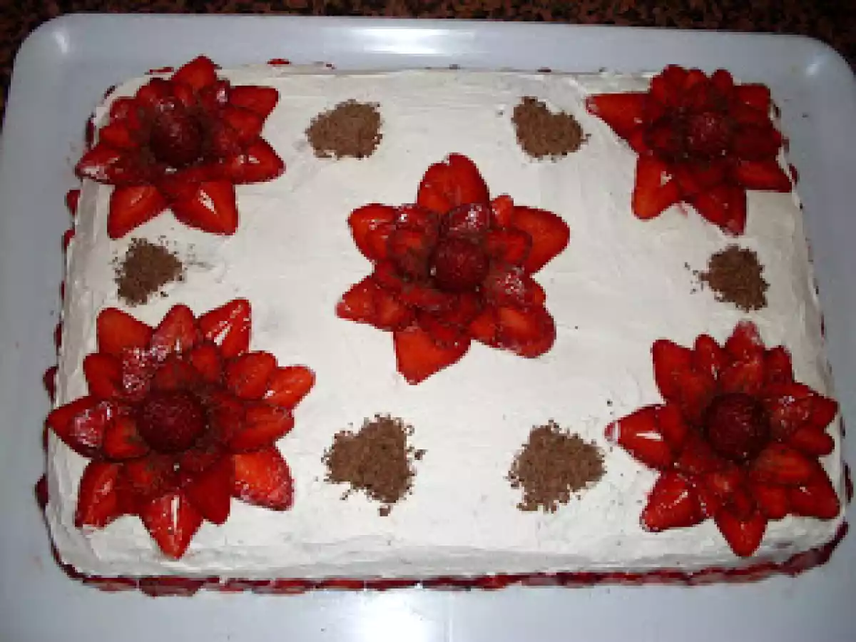 Torta fragolosa... PrecedenteProssimo Dessertfacile1 h 5 m Invia questa ricetta ad un amico Stampa la ricetta Contatta l'autore della Ricetta Pubblica la foto di questa ricetta Ingredienti 7 Pan di Spagna: 8 uova 320 g di farina 320 g di zucchero 2 bustine di vanillina la buccia grattuggiata di 2 limoni sale 3 bustine di lievito Per la crema : 8 tuorli 330 g di zucchero 80 g di farina 2 buste di vanillina limoncello 750 ml di latte sale panna 200ml Decorazione : fragole panna montata
