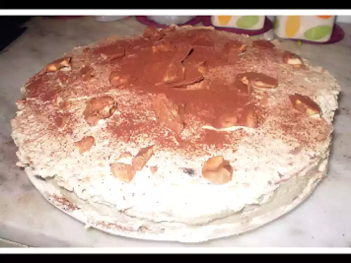 Torta fredda alle mandorle.... mmmmmm.... vota adesso PrecedenteProssimo Dessertfacile1 h 10 m Invia questa ricetta ad un amico Stampa la ricetta Contatta l'autore della Ricetta Pubblica la foto di questa ricetta Ingredienti 4 Pan di Spagna al cioccolato Pralinato alle mandorle Bavarese alle Mandorle Per il pan di spagna al cioccolato: 2 uova 120 g zucchero 60 g farina 30 g di amido di mais 1 cucchiaio di cacao amaro Per il Pralinato alle mandorle: 80 g mandorle spellate 100 g cioccolato al latte 100 g cioccolato bianco 30 g burro BASE PER BAVARESI: 2 uova 250 ml di latte 100 g zucchero 35 g maizena o frumina 8 g di colla di pesce 200 g mandorle spellate e ridotte in pasta 100 g di mandorle tostate e tritate grossolanamente 500 ml di panna fresca da montare