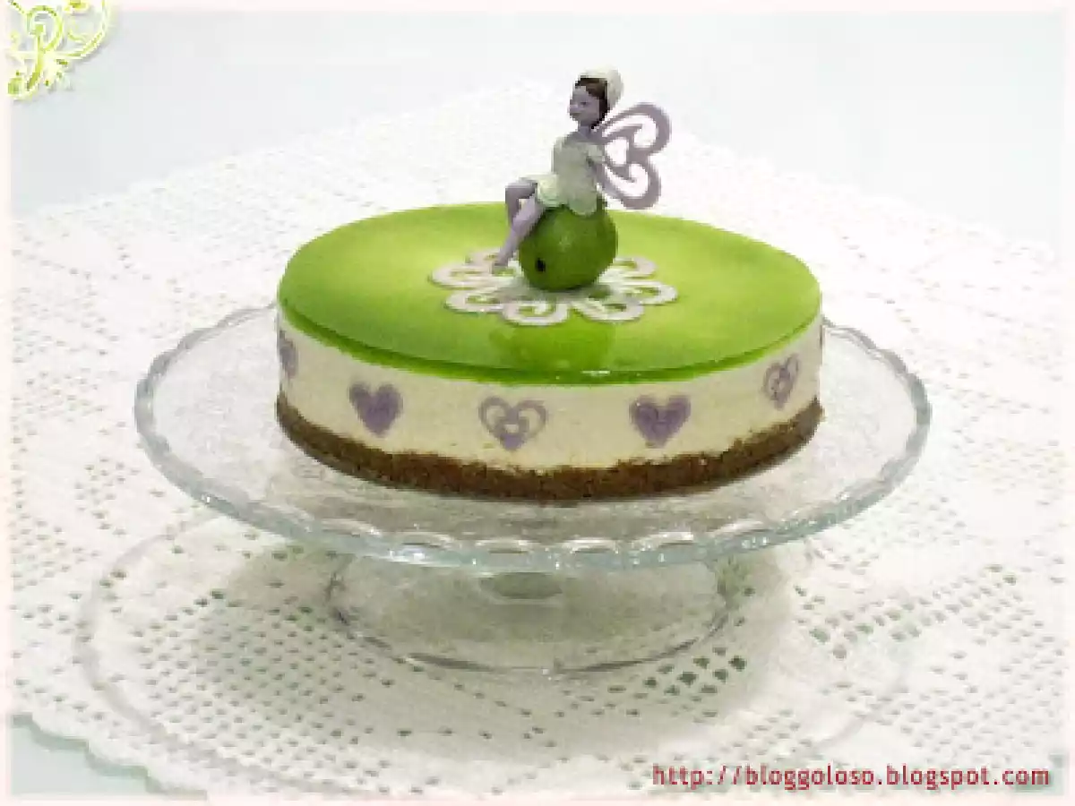 Torta "la fatina delle mele verdi" (cheesecake con mousse di mela verde) PrecedenteProssimo Dessertfacile50 min954 Kcal Invia questa ricetta ad un amico Stampa la ricetta Contatta l'autore della Ricetta Pubblica la foto di questa ricetta Ingredienti 3 Base : 160 g di biscotti Digestive 75 g di burro fuso Mousse di mele verdi : 20 g di zucchero 100 g di latte 1 tuorlo 80 g di purea di mela verde 1/4 di limone pochissimo colorante verde in gel 100 g di mela verde a dadini 6 g di gelatina in fogli 80 g di panna montata Crema di mascarpone 100 g di philadelphia 1 tuorlo 50 g di zucchero 50 g di purea di mela 4 g di gelatina in fogli 250 g di mascarpone 150 g di panna montata Gelatina di copertura 75-80 g succo di mela + acqua pochissimo colorante verde in gel 2-3 g di gelatina in fogli