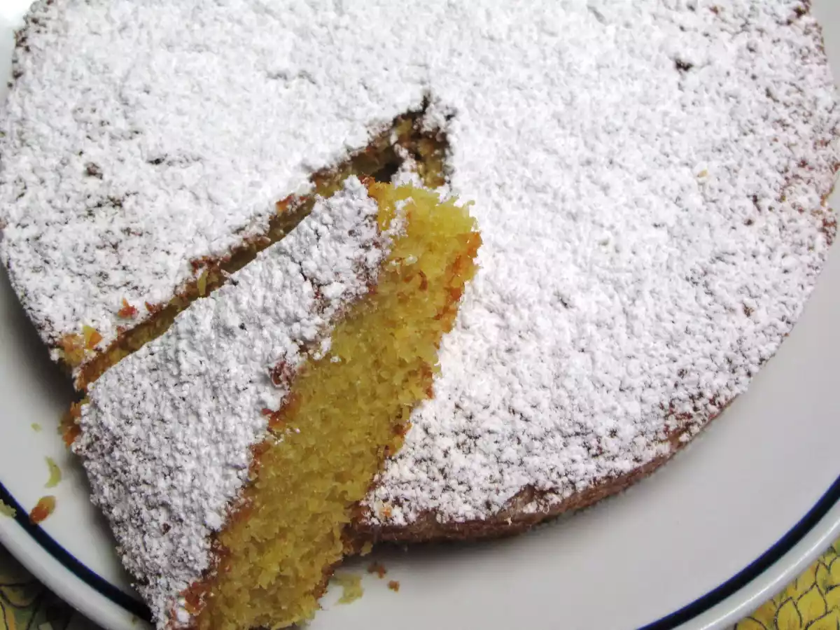 Una buonissima torta a base di cocco e spolverizzata con zucchero a velo