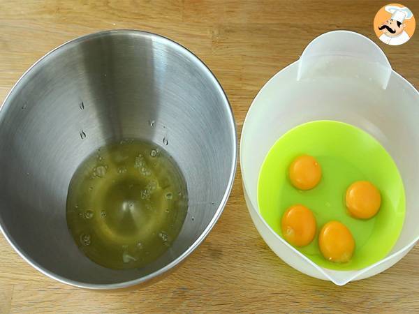 Separate gli albumi dai tuorli. Poi montate gli albumi a neve ferma