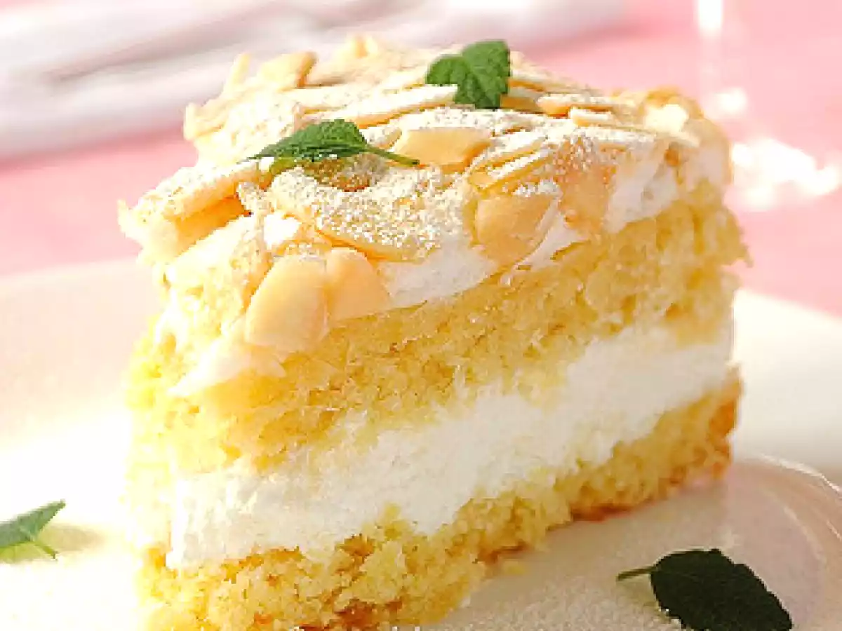 Torta meringata con crema alla panna e vino bianco PrecedenteProssimo Dessertfacile1 h 25 m1439 Kcal Invia questa ricetta ad un amico Stampa la ricetta Contatta l'autore della Ricetta Pubblica la foto di questa ricetta Ingredienti 3 Per l' Impasto Base: 3 tuorli 125 g di zucchero 125 g di burro morbido a pezzi 150 g di farina 60 ml di latte 2 cucchiaini di lievito in polvere Per la Meringa e la Copertura: 3 albumi 100 g di zucchero a velo 60 g di mandorle tritate grossolanamente Per la Farcitura: 150 ml di vino bianco 35 g di amido 115 g di zucchero a velo 3 cucchiai di succo di limone 200ml di panna montata già zuccherata