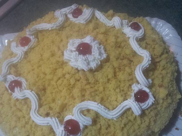 Morbido pan di spagna farcito con crema chantilly e pezzetti d'ananas. Per un compleanno o una ricorrenza aprticolare.