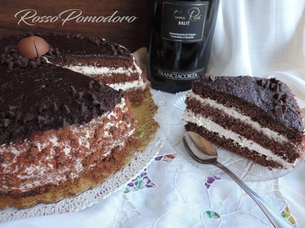 Deliziosa torta al caffè realizzata con morbido pan di spagna, crema al mascarpone, panna e glassa al caffè
