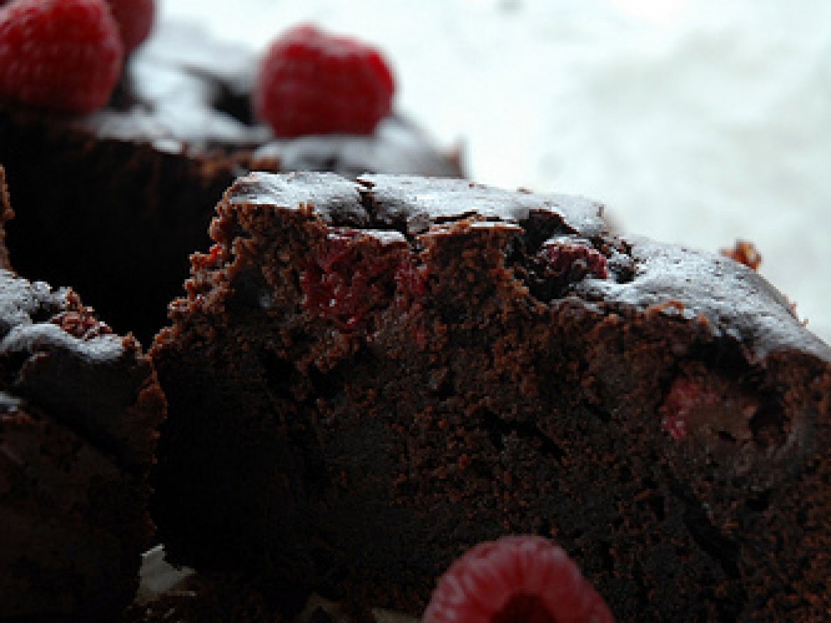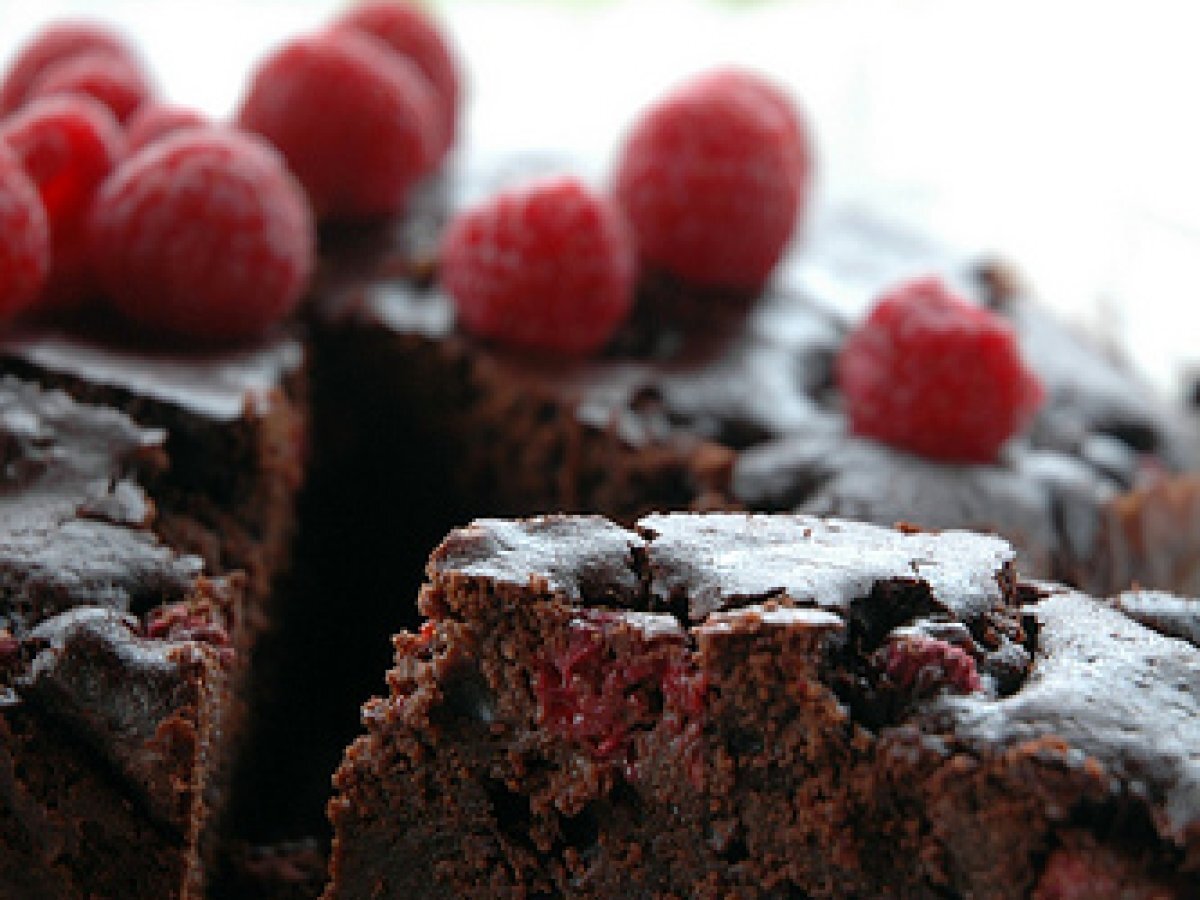 Torta morbida al cioccolato e lamponi di nigella PrecedenteProssimo Dessertfacile55 min459 Kcal Invia questa ricetta ad un amico Stampa la ricetta Contatta l'autore della Ricetta Pubblica la foto di questa ricetta Una torta a base di cioccolato e lampone. Ingredienti 8 180 g di farina 00 40 g di cacao 1 cucchiaio di lievito raso 170 ml di latte 170 ml di acqua 100 g di zucchero di canna 60 g di zucchero semolato 100 g di burro 220 g di cioccolato fondente 2 uova 1 pizzico di sale 200 g di lamponi freschi Costo stimato: 6.55Euros€ (0.82€/Porzioni)