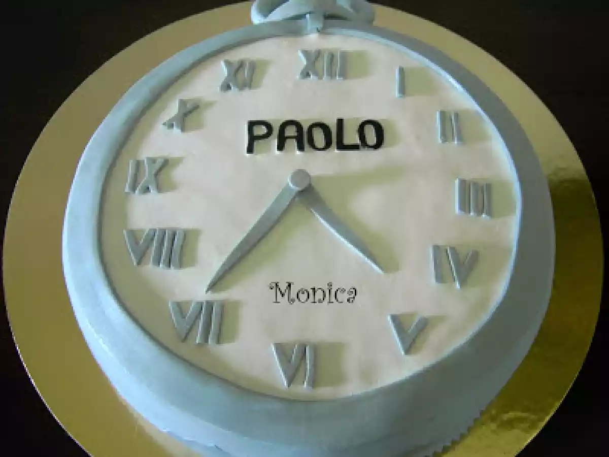 Torta orologio PrecedenteProssimo Dessertfacile40 min392 Kcal Invia questa ricetta ad un amico Stampa la ricetta Contatta l'autore della Ricetta Pubblica la foto di questa ricetta Ingredienti 5 450 g di zucchero a velo 50 g di miele chiaro 2 g di gelatina in fogli 30 g di acqua Costo stimato: 1.05Euros€ (0.21€/Porzioni)