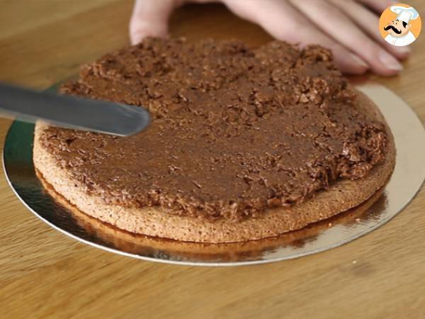 Applicate immediatamente questo composto sulla dacquoise alla nocciola e livellate con una spatola (la superficie deve essere uniforme). Quindi conservate in frigorifero.