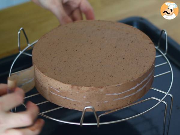 Qualche minuto prima che la temperatura arrivi a 36° C togliete la base della torta dal congelatore e adagiatela su una griglia da pasticceria. Togliete l'anello ed il nostro acetato.