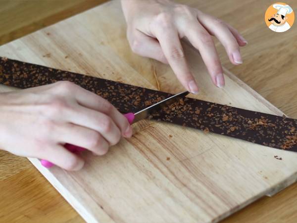 Infine, adagiate i triangoli di cioccolato vicino alla linea che avete creato sulla superficie.