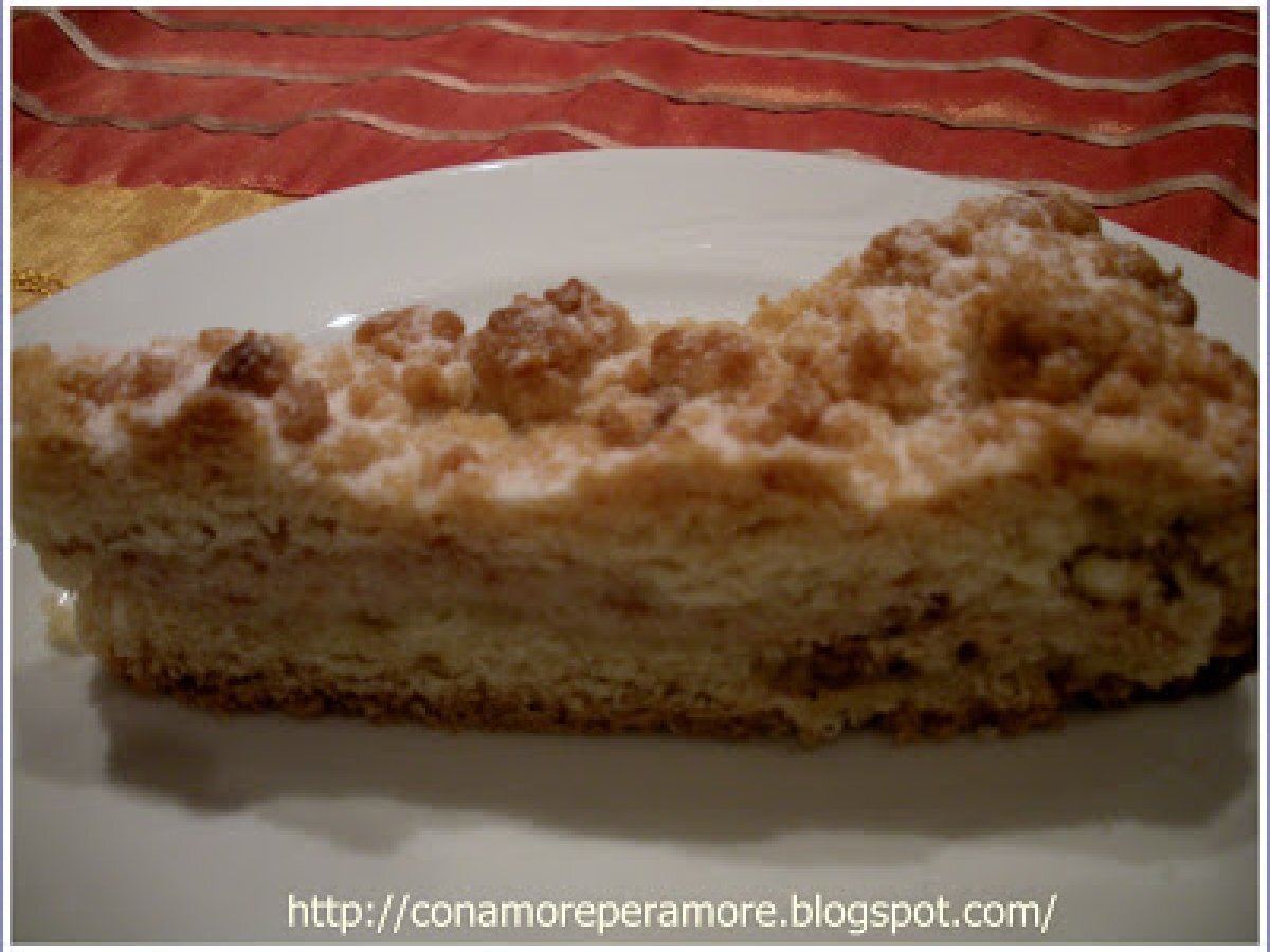 Torta sbriciolata di ricotta e amaretti di elena di giovanni PrecedenteProssimo Dessertfacile1 h 10 m Invia questa ricetta ad un amico Stampa la ricetta Contatta l'autore della Ricetta Pubblica la foto di questa ricetta Ingredienti 4 per il ripieno: 300 g di ricotta vaccina fresca 90 g di zucchero 1 uovo intero 1-2 cucchiai di latte circa 20 amaretti Per l'impasto: 300 g di farina 1 uovo intero 1 etto di burro ammorbidito ma non fuso 100 g di zucchero 1 bustina di lievito e una di vanillina