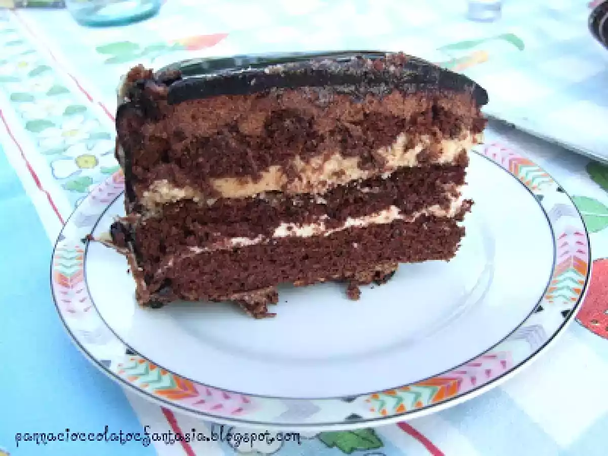 Torta sette veli PrecedenteProssimo Dessertmedia1 ora Invia questa ricetta ad un amico Stampa la ricetta Contatta l'autore della Ricetta Pubblica la foto di questa ricetta Ingredienti 4 Per il pan di spagna al cioccolato: 5 uova 150 g di zucchero 45 g di farina 00 45 g di fecola di patate 30 g di cacao pz di sale Disco di cioccolato: 120 g di cioccolato fondente 60 g di fiocchi di mais 50 g di mandorle pralinate un pò di burro Base per bavarese 250 g di latte 100 g di zucchero 35 g di amido di mais 2 tuorli essenza di vaniglia Pasta di nocciole: 75 g di nocciole spellate e tostate