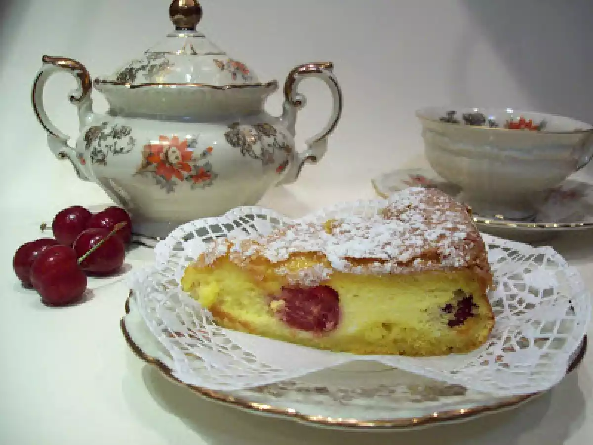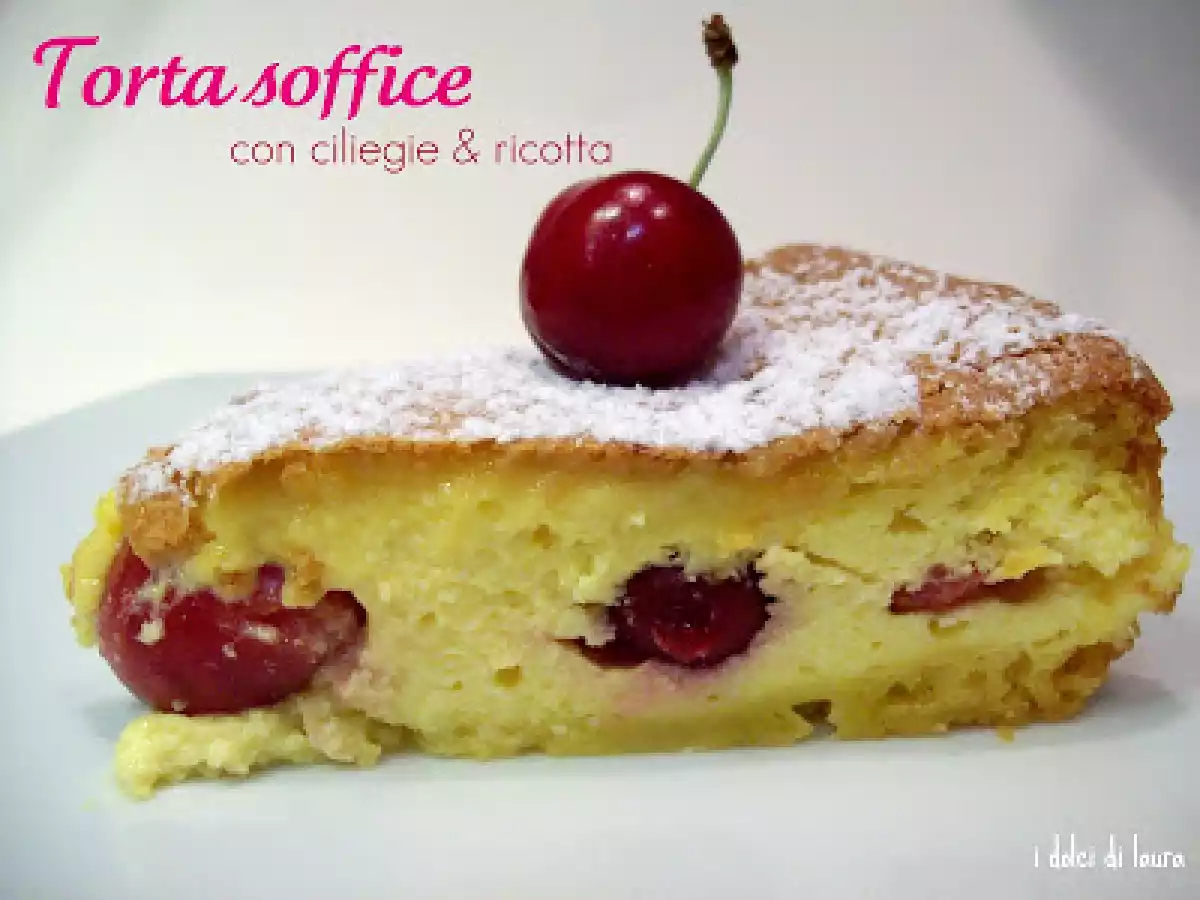 Torta soffice con ciliegie e ricotta PrecedenteProssimo Dessertfacile1 h 40 m Invia questa ricetta ad un amico Stampa la ricetta Contatta l'autore della Ricetta Pubblica la foto di questa ricetta Una deliziosa ricetta per preparare la torta con le ciliegie Ingredienti 4 Ingredienti per la base: 2 uova intere 150 g di zucchero, 55 g di olio di semi, 65 g di latte, 125 g di farina 00, 1 bustina di lievito per dolci Ingredienti per la farcitura: 500 g di ricotta 20 ciliegie denocciolate oppure 100 g di uvetta 4 uova, 1 pizzico di sale, 40 g di semolino o farina, 80 g di zucchero vanillina zucchero a velo