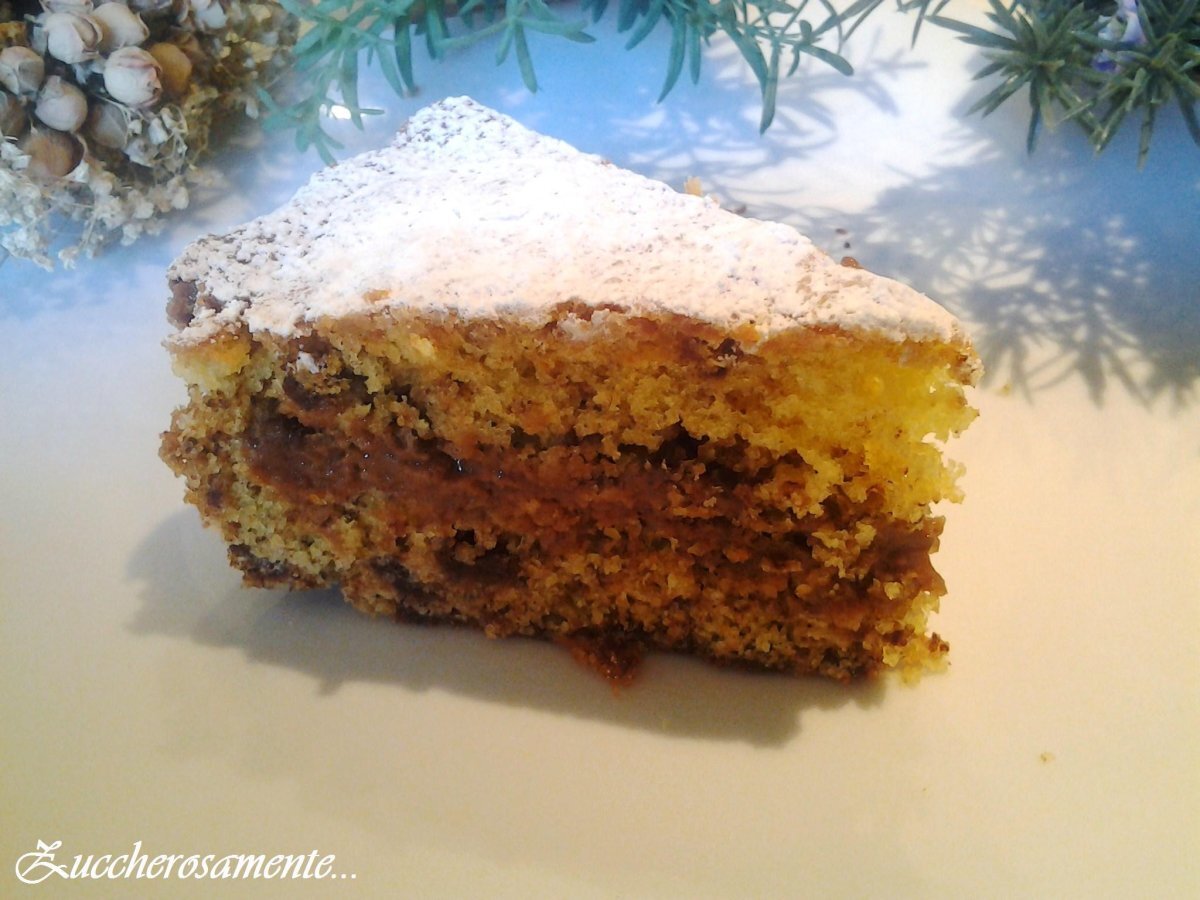 Torta soffice e morbidissima arricchita da pezzetti di cioccolato al latte e farcita con crema giunduia.