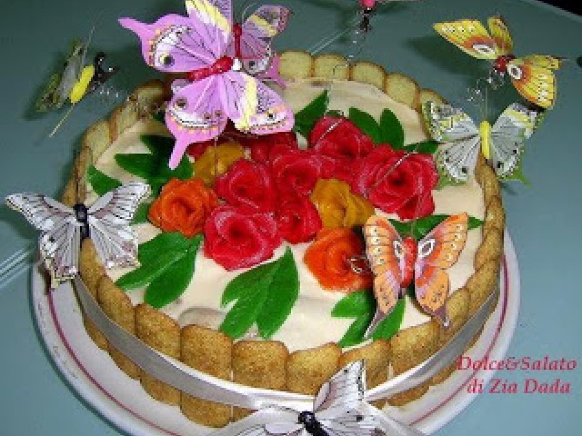Torta tiramisu' decorata con pavesini e pasta di zucchero Dessertfacile50 min Invia questa ricetta ad un amico Stampa la ricetta Contatta l'autore della Ricetta Pubblica la foto di questa ricetta Ingredienti 8 500 g di pavesini 3 tuorli +2 albumi 300 g di mascarpone 6 cucchiai di zucchero 6 cucchiai di caffè amaro sale q.b. cacao amaro