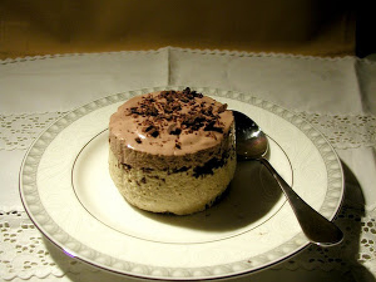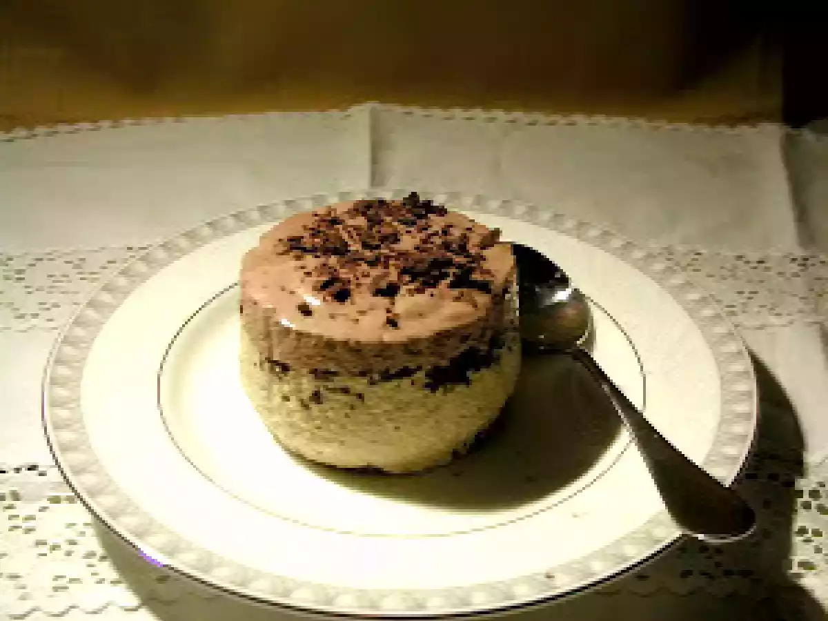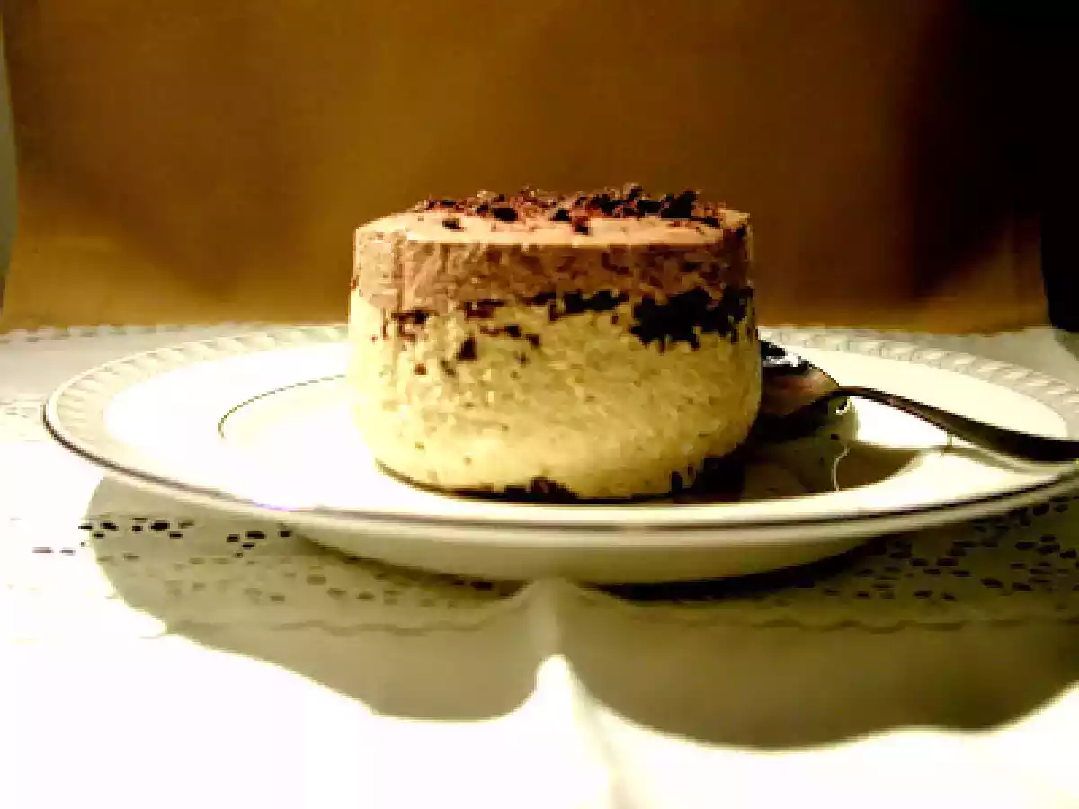 Tortini con mousse di cioccolato e caffè PrecedenteProssimo Dessertfacile1 h 20 m Invia questa ricetta ad un amico Stampa la ricetta Contatta l'autore della Ricetta Pubblica la foto di questa ricetta Ingredienti 2 Per la base : 100 g farina 0 50 g burro 40 g zucchero a velo 1 tuorlo d'uovo 1 pizzico di sale 15 g cacao amaro un pizzico lievito vanigliato per dolci Per la base di crema inglese : 2 tuorli 50 g zucchero semolato 200 ml latte 1/2 bacca di vaniglia 1 foglio di colla di pesce Per la mousse al cioccolato : mezza dose di crema inglese 20 g cioccolato fondente 50 g panna fresca montata Per la mousse al caffè : mezza dose di crema inglese 50 g panna fresca montata 1 cucchiaino caffè liofilizzato scaglie di cioccolato per rifinire