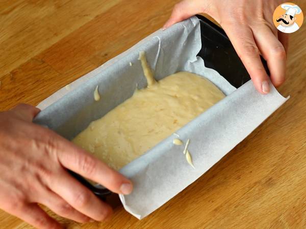 Versate l'impasto in uno stampo da plumcake rivestito con carta da forno (oppure imburrato) e cuocete per 9 minuti a 200°C. Passato questo tempo, togliete dal forno e lasciate che si raffreddi completamente.