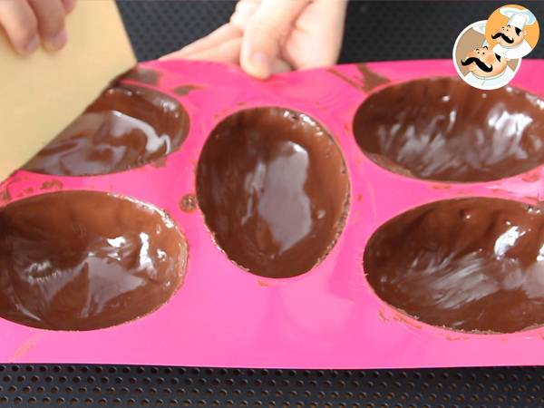 Poi ammorbidite l'altra parte dell'uovo di cioccolato e richiudete. (Se avete difficoltà, date un'occhiata alla video ricetta)