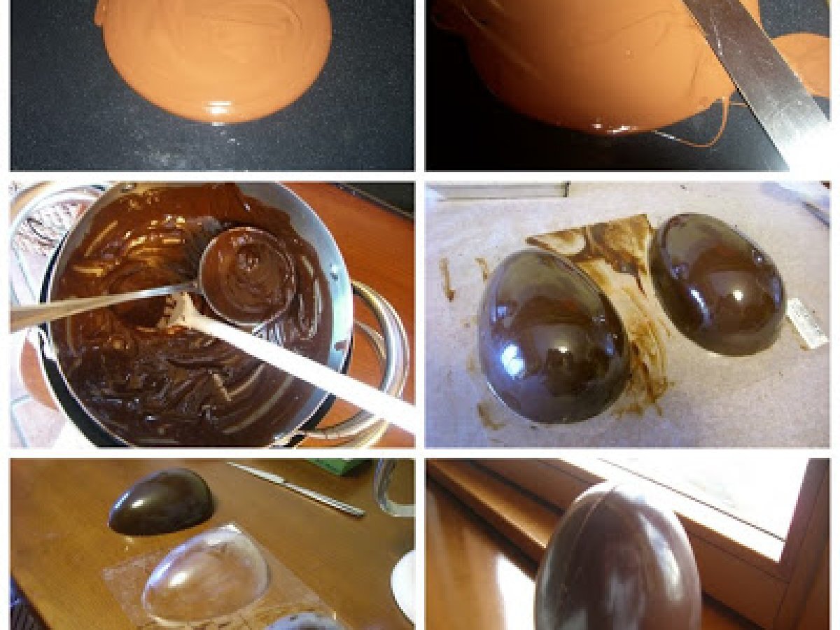 Dare qualche colpetto, e inserendo la mano nella parte concava, roteare leggermente, si staccherà con facilità, mostrando tutta la sua lucentezza. - Scaldare una teglia o una larga padella e dopo aver spento, afferrare i due mezzi gusci CON I GUANTI DI COTONE e farli scorrere sulla padella, fino a fonderli leggermente, a questo punto, inserire la sorpresa e unire le due metà.