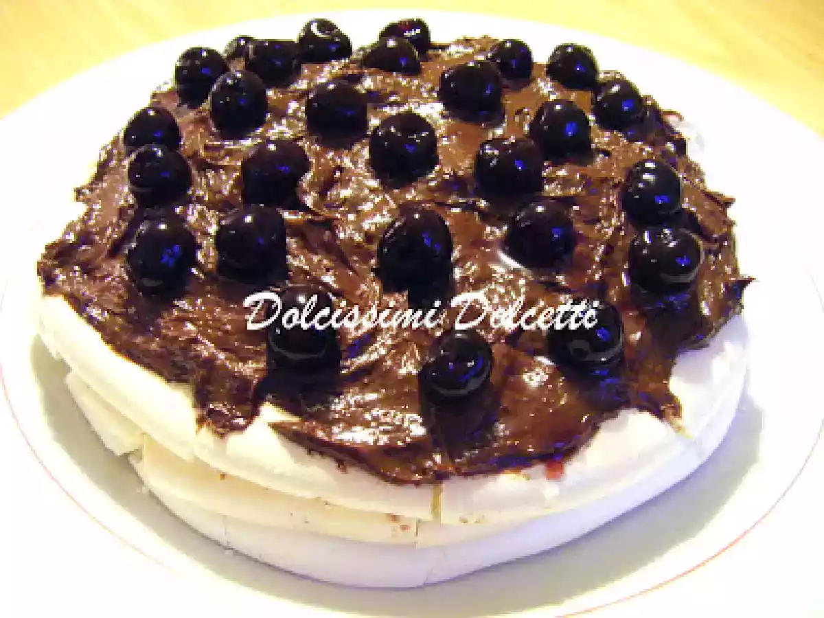 Vacherin con crema di cioccolato e amarene vota adesso Dessertfacile2 h 5 m Invia questa ricetta ad un amico Stampa la ricetta Contatta l'autore della Ricetta Pubblica la foto di questa ricetta Ingredienti 5 5 albumi 350 g di zucchero 1 bacca di vaniglia Ingredienti per la crema: 250 gr di cioccolato fondente 2 tuorli 50 g di zucchero 50 g di burro 1 vasetto di amarene Toschi da 250 g