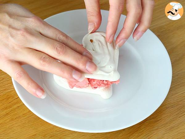 Mettete in congelatore oppure consumate immediatamente.- I cuori di meringa con gelato alla fragola sono pronti!