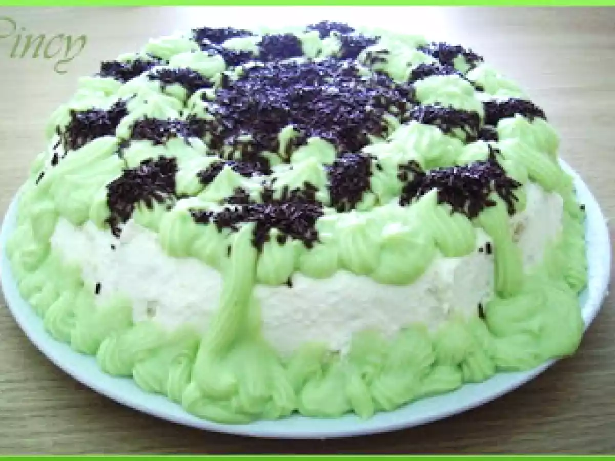 Voglia di golosità, torta panna e menta Dessertfacile1 h 15 m Invia questa ricetta ad un amico Stampa la ricetta Contatta l'autore della Ricetta Pubblica la foto di questa ricetta Ingredienti 6 1 dose di PDS Velocissimo, postato da Mara nel Forum Quisquilie, che ormai uso per tutte le mie torte, da preparare con: 4 uova pesate senza guscio Altrettanta farina 00 Altrettanto zucchero togliendo 10 g 1 bustina di lievito per dolci 1 dose crema di menta da preparare con: 40 g di acqua 60 g di sciroppo menta 2 uova intere 150 g zucchero 60 g di farina 30 g burro morbido 500 ml latte 1 pizzico di sale latte qb per bagnare il PDS 400 ml panna fresca zucchero a velo qb per montare la panna codette di cioccolato per decorare