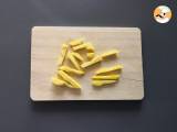 Ora sbucciate la radice di zenzero e tagliate anche essa a fettine, poi a listarelle.