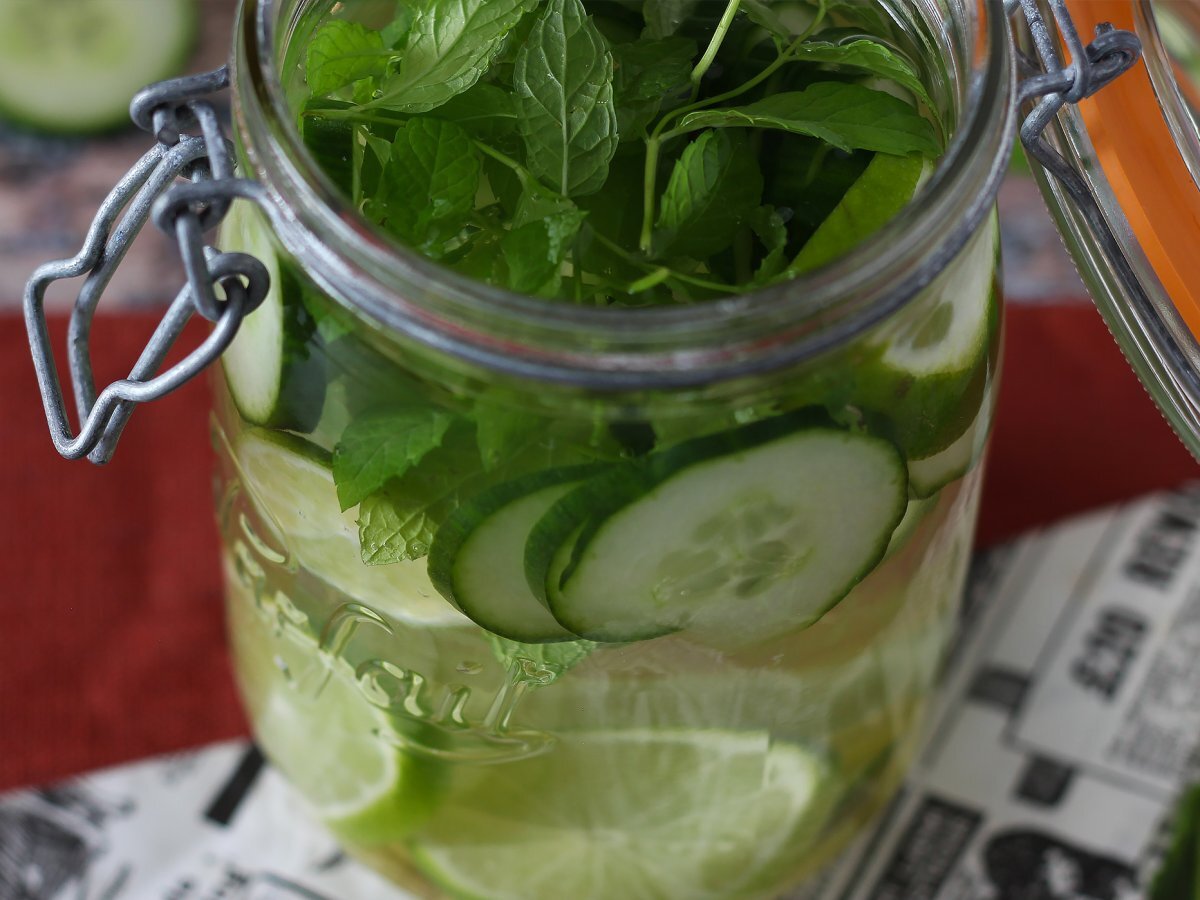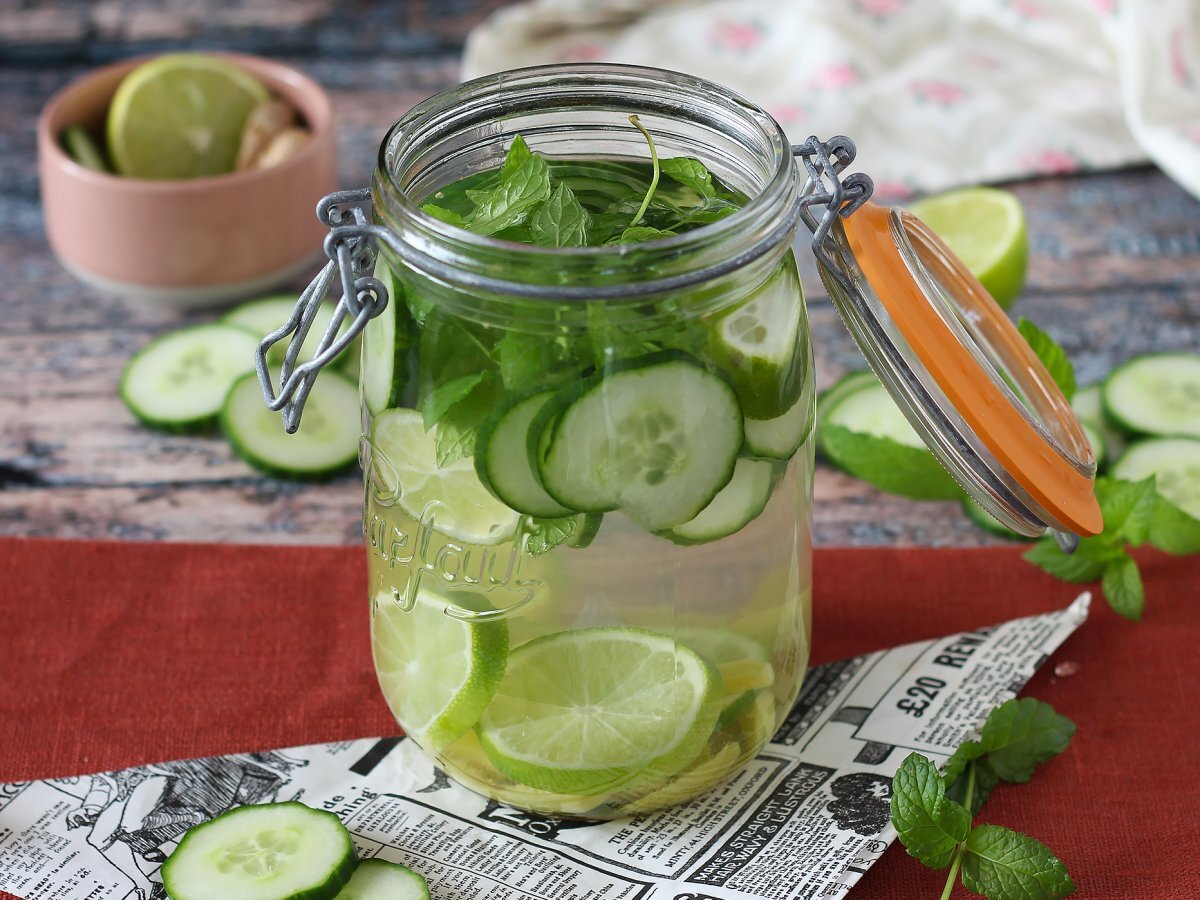 Come servire l'acqua aromatizzata al cetriolo, lime, menta e zenzero ?