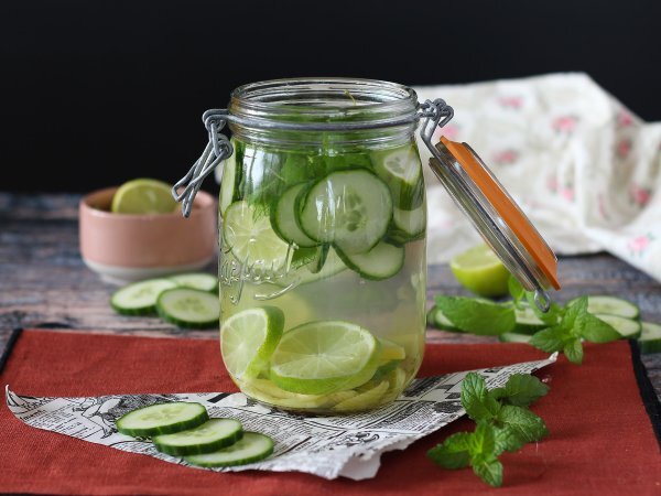 L'acqua aromatizzata con cetriolo, menta, lime e zenzero è pronta!