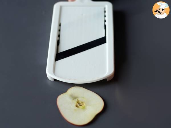Affettate sottilmente una mela con una mandolina o un coltello (utilizzate la parte centrale della mela per avere una forma di cuore)