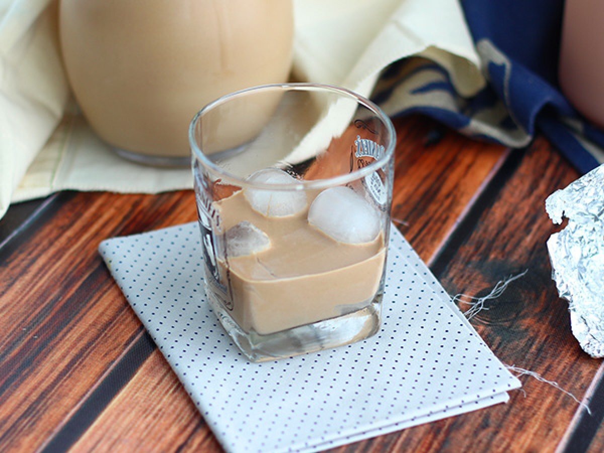 Il baileys fatto in casa è pronto. Servitelo in un bicchiere di vetro con qualche cubetto di ghiaccio!