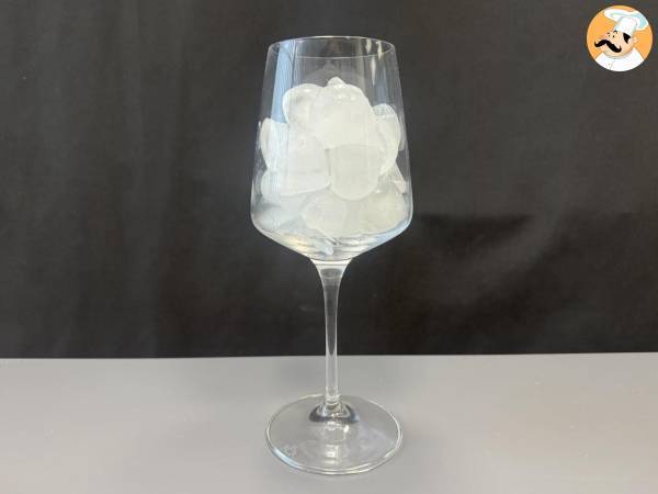 Un bicchiere grande da gin tonic o un calice da vino sono perfetti per questo drink.