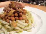Ingredienti: 4 piccoli finocchi 200 g ceci cotti 500 g sgombro sott'olio 4 cucchiai di senape 2 cucchiai di maionese 4 cucchiai di olio sale e pepe q.b.