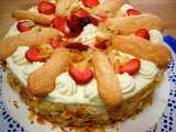 Ingredienti: 1) per il pan di spagna: 4 uova 90 g.di zucchero 50 g. di farina 50 g. di fecola un pizzico di sale 2) crema pasticcera: 250 ml. latte 120 g....