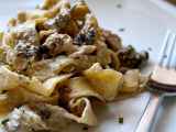 Ingredienti: Per l'impasto : 4 uova 130 g cucchiai di nocciole macinate 270 g di farina circa Per il sugo : 1+1/2 cipolla 400 g di guanciale pepe 3 cucchiai di...