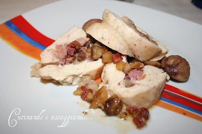 E visto che avevo ancora qualche busta di castagne della NOBERASCO, ho pensato di prendere spunto dalla sua ricetta.... anche se non avevo tutti gli ingredienti è saltato fuori un piatto saporitissimo!!