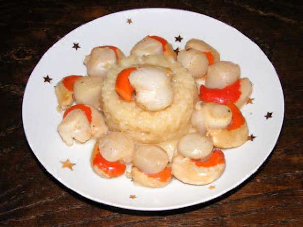 03 - risotto delle feste vota adesso Portata principalefacile45 min Invia questa ricetta ad un amico Stampa la ricetta Contatta l'autore della Ricetta Pubblica la foto di questa ricetta Ingredienti 6 400 g di riso ½ l di champagne o spumante brut 1 l di brodo vegetale 1 scalogno 5 cucchiai di olio di oliva 24 capesante 20 ml di champagne 1 noce di burro Sale e pepe