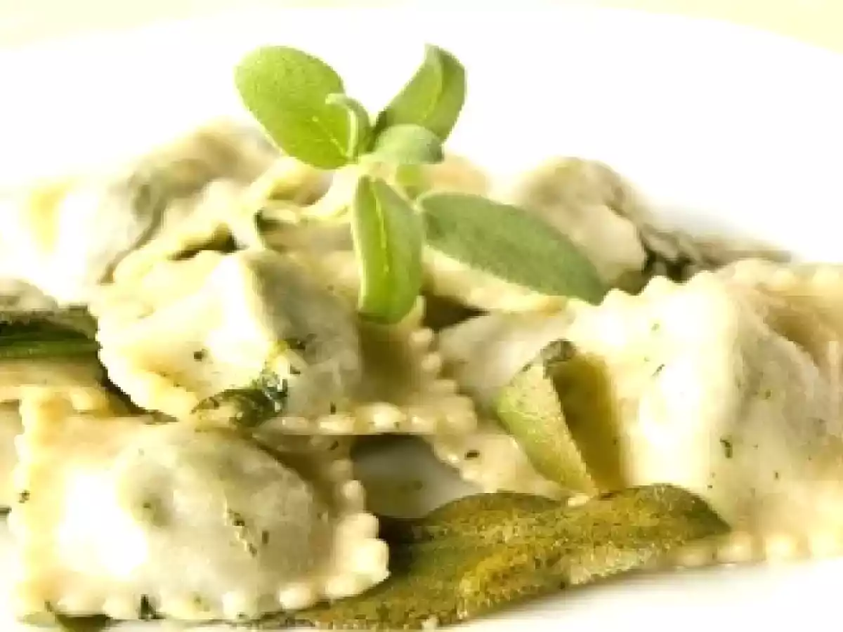 Distribuite questo preparato sulla sfoglia di pasta, a cucchiaini distanziati, una fila dopo l'altra; ripiegate, via via, il lembo superiore della sfoglia e, dopo aver pigiato con forza tutta la zona attorno ai mucchietti di ripieno, tagliate gli agnolotti semicircolari con una fustella di circa 5 cm di diametro.