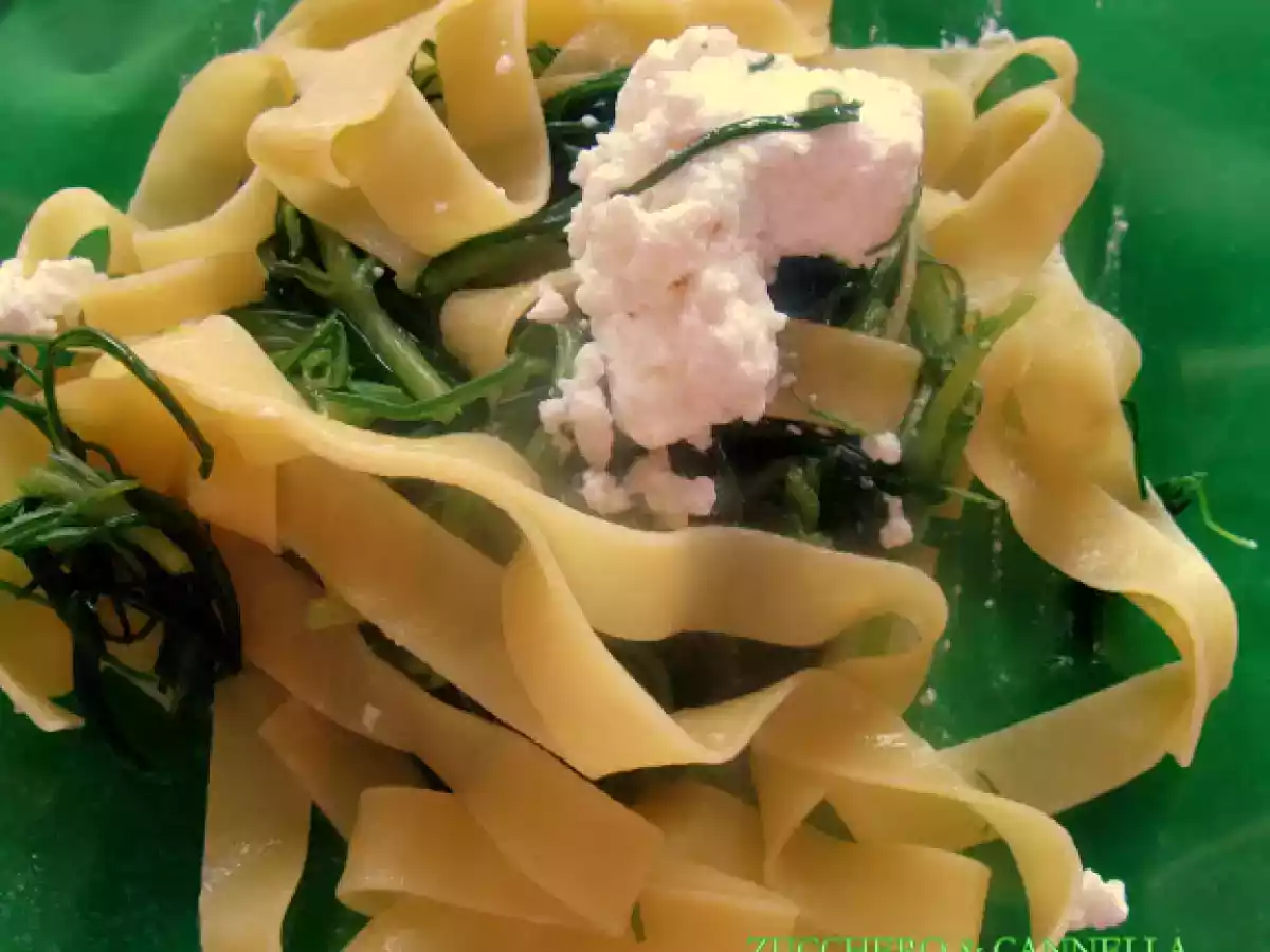 - Nella stessa acqua di cottura degli agretti cuocere le fettucce. Scolarle al dente ed unirle agli agretti insieme alla ricotta. Mescolare e servire.
