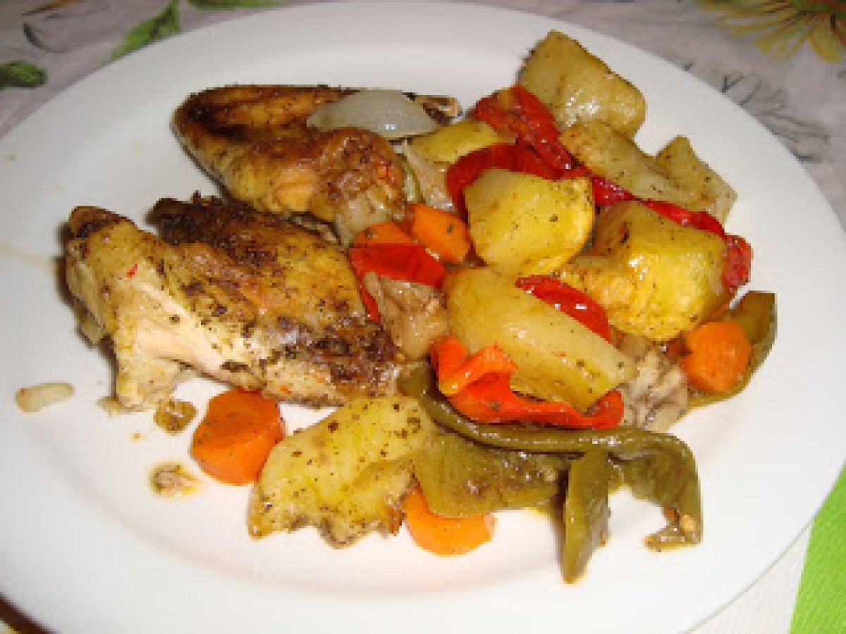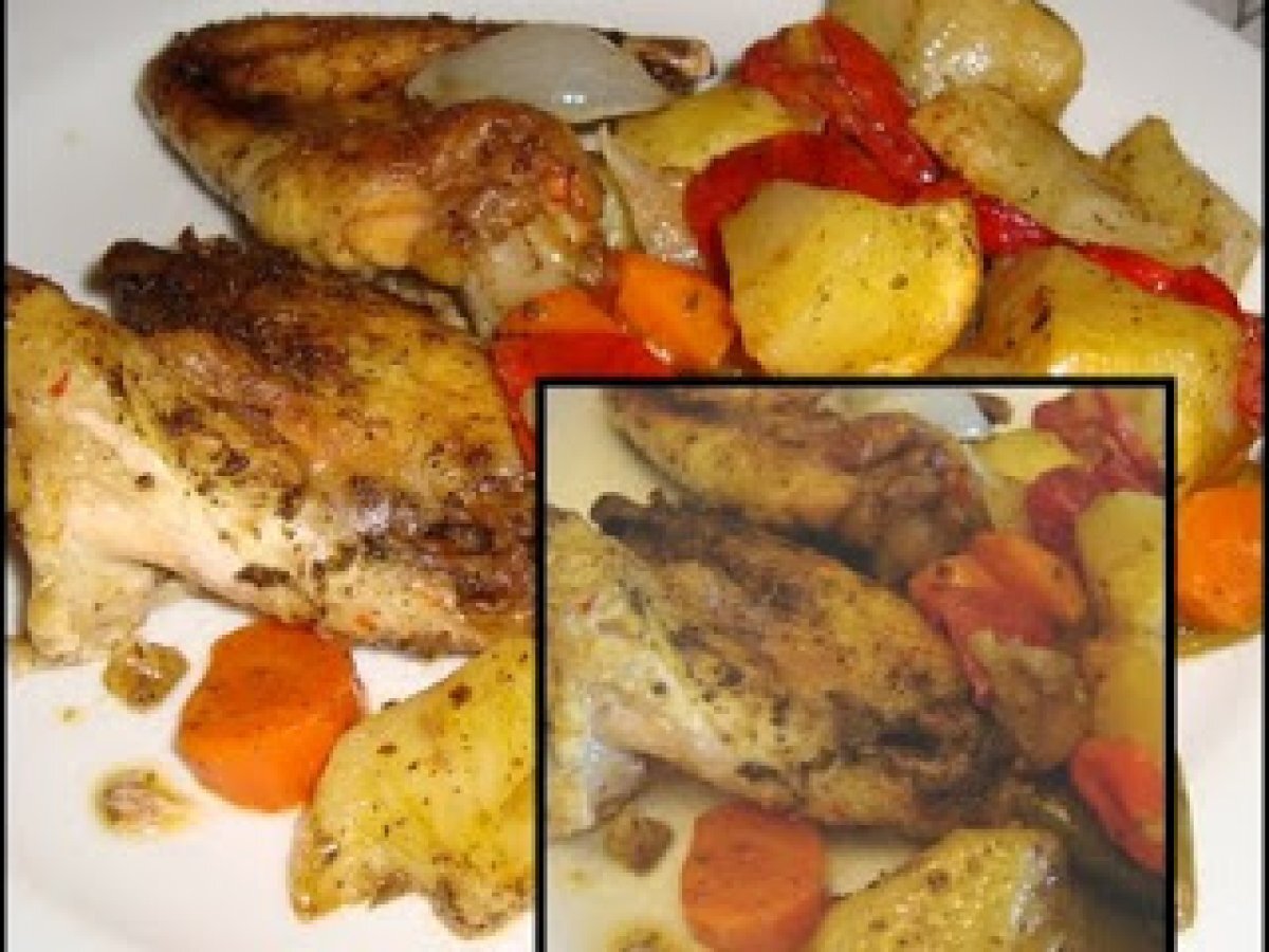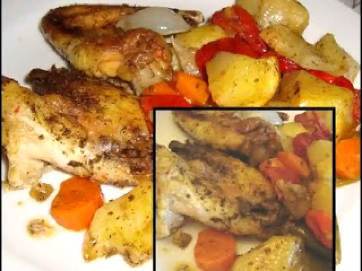 Ali di pollo con patate al forno PrecedenteProssimo Portata principalefacile50 min3622 Kcal Invia questa ricetta ad un amico Stampa la ricetta Contatta l'autore della Ricetta Pubblica la foto di questa ricetta Ingredienti 1 ali di pollo; carota cipolla peperoni patate trito di olio sale aglio alloro prezzemolo rosmarino e salvia aromi vari sedano cipolla e prezzemolo acqua e vino bianco