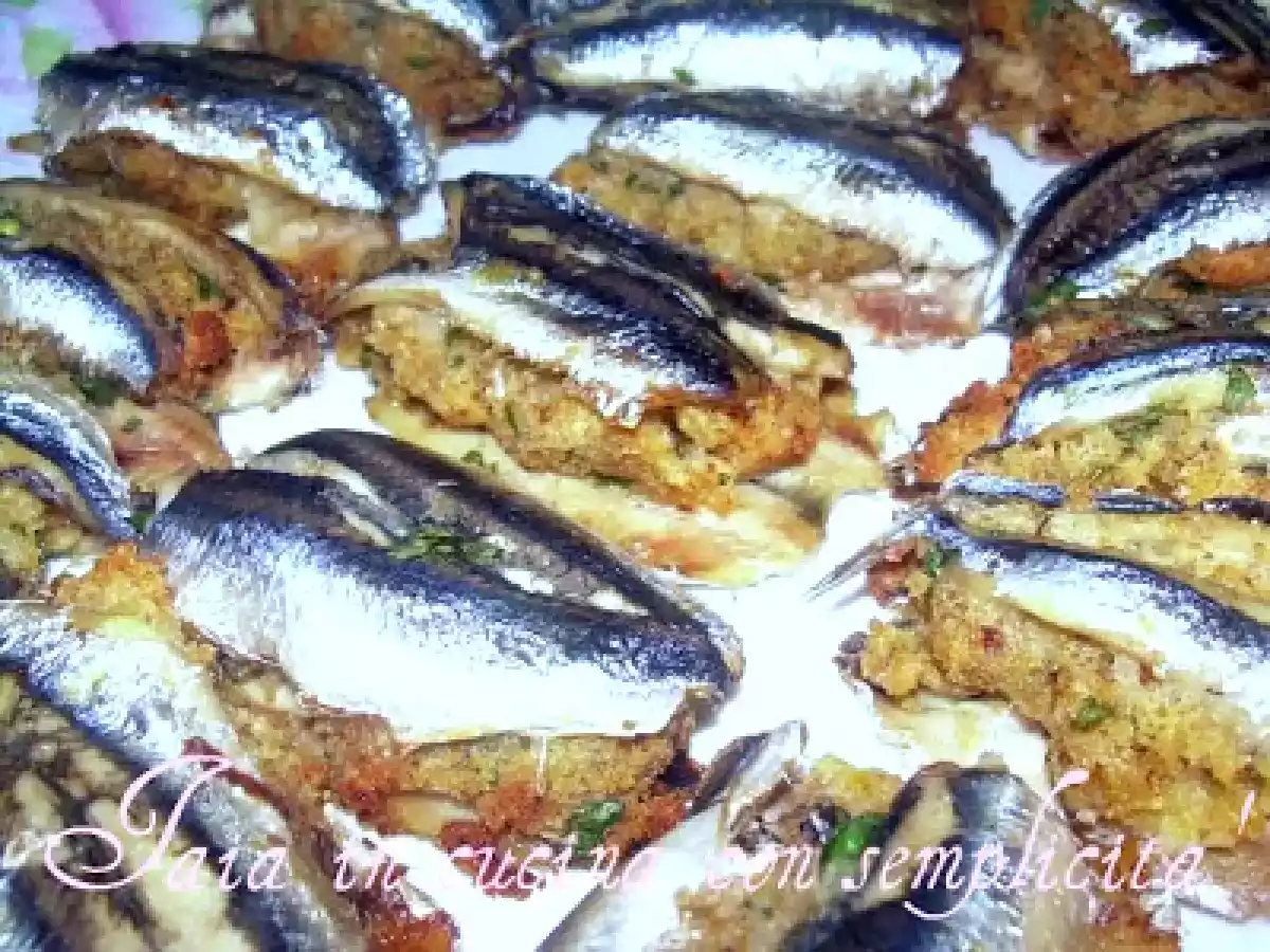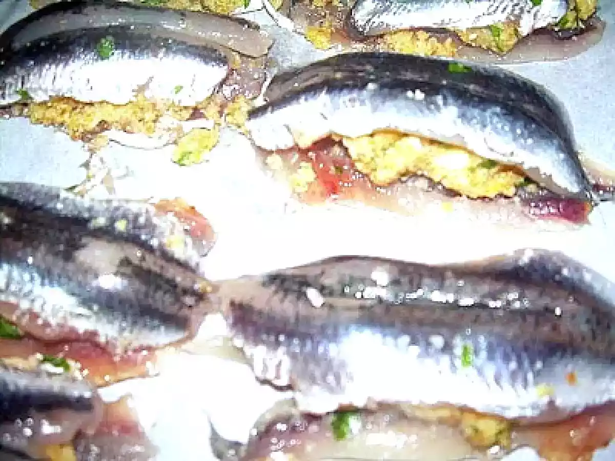 Alici ripiene PrecedenteProssimo Portata principalefacile50 min Invia questa ricetta ad un amico Stampa la ricetta Contatta l'autore della Ricetta Pubblica la foto di questa ricetta Ingredienti 2 alici pangrattato uovo sale parmigiano prezzemolo aglio se gradito olio