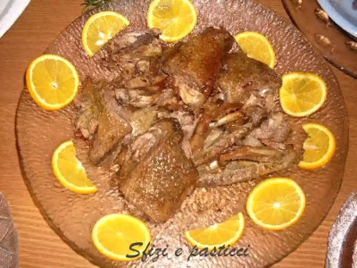 Anatra all'arancia Portata principalefacile1 ora Invia questa ricetta ad un amico Stampa la ricetta Contatta l'autore della Ricetta Pubblica la foto di questa ricetta Ingredienti 2 1 anatra 1 cipolla 1 carota Salvia, rosmarino 1 spicchio d?aglio 1 foglia di alloro 3 arance 1 limone 1 cucchiaino di fecola Sale e pepe